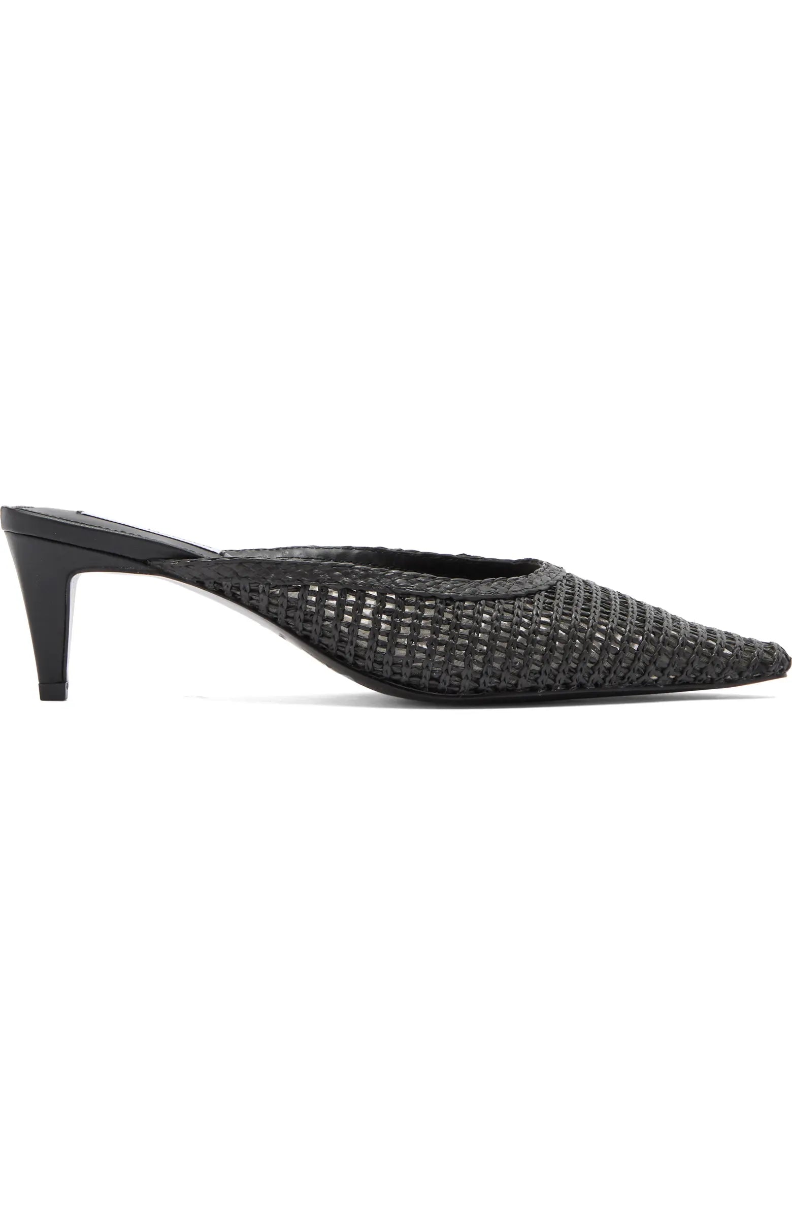 A pointy toe and sculptural heel dial up the glamour of a woven pump that offers contemporary appeal.