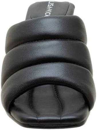 A quilted strap amplifies the contemporary sophistication of this striking block-heel sandal.