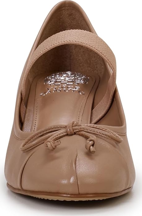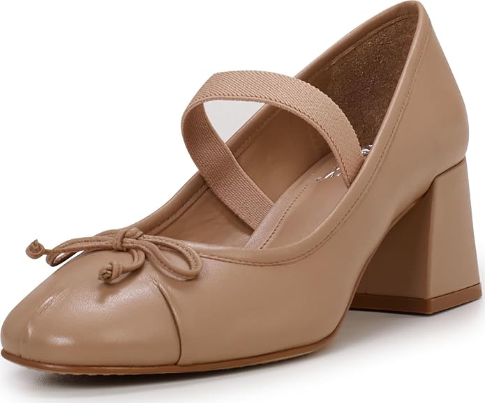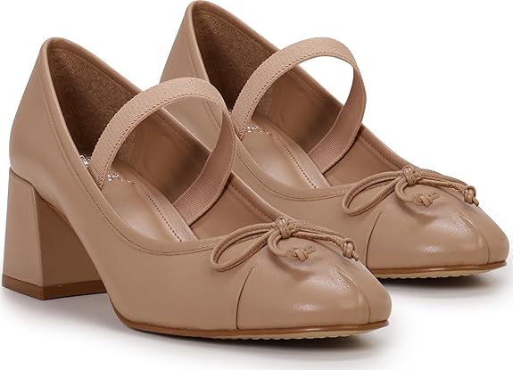 The Melodie is essentially a classic ballet shoe set atop a covered block heel right down to the elastic strap across the throat and bow tie at the toe. The upper is more structured than a ballet shoe as it is lined.